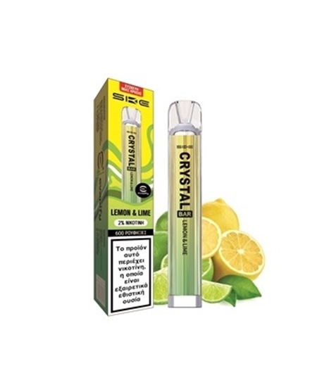SKE Crystal Bar Lemon Lime: Ηλεκτρονικό τσιγάρο μιας χρήσης με 2ml υγρού και 20mg άλατα νικοτίνης. Έντονη, δροσιστική γεύση λεμονιού και lime για έως 800 απολαυστικές εισπνοές. Κομψή, κρυστάλλινη σχεδίαση.