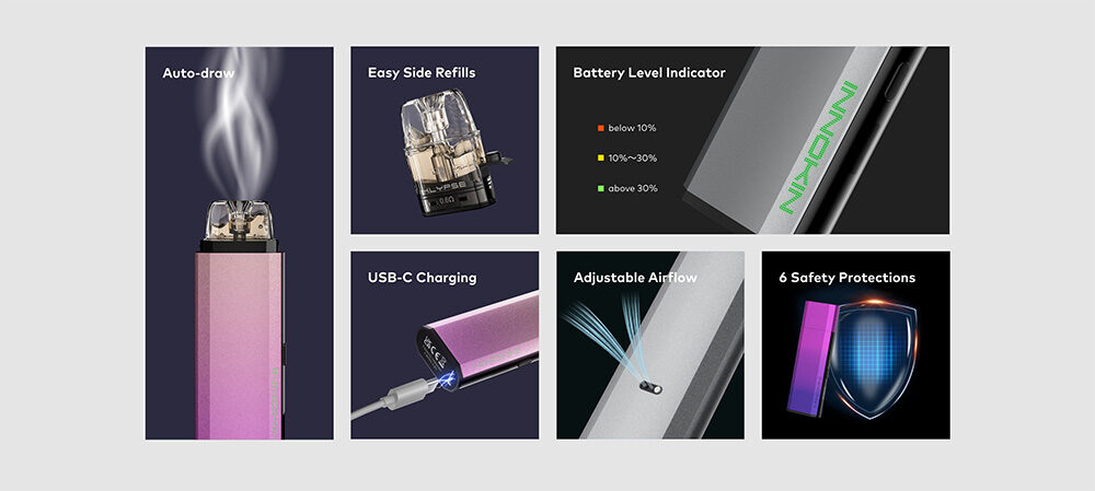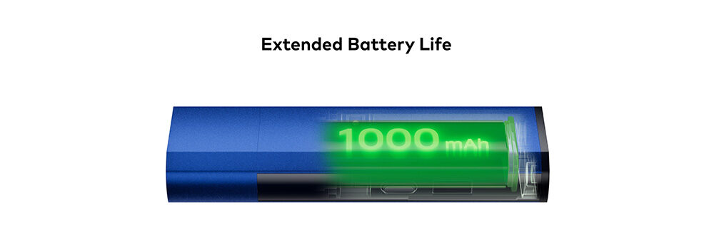 Με μεγαλύτερη μπαταρία 1000mAh, το Klypse Pro προσφέρει έως και 42% περισσότερη διάρκεια ζωής της μπαταρίας για εκτεταμένες περιόδους ατμίσματος.