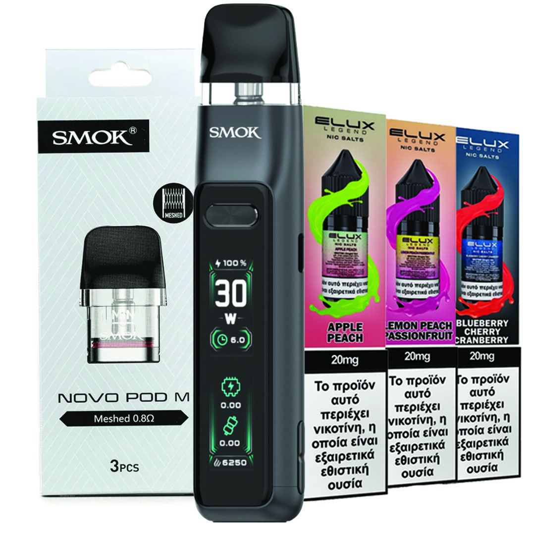 Η δική μας προσφορά Bundle περιλαμβάνει επιπλέον ανταλλακτικά pods και επιλογή από υγρά αναπλήρωσης με άλατα νικοτίνης των 10 ml σε γεύσεις της επιλογής σου, ώστε να ξεκινήσεις αμέσως και να απολαμβάνεις για εβδομάδες. Ένα πλήρες πακέτο για όσους θέλουν ένα εύχρηστο και αξιόπιστο pod kit με υψηλή αυτονομία, ρύθμιση 30 W και κορυφαία γεύση.